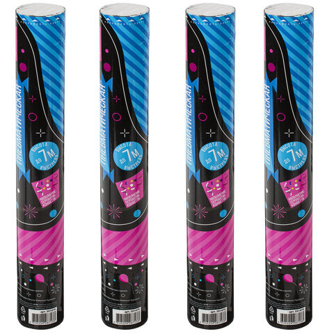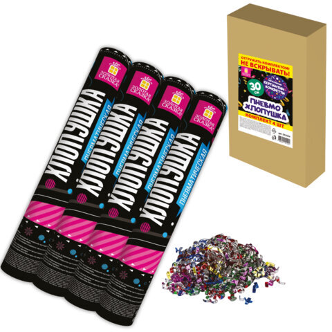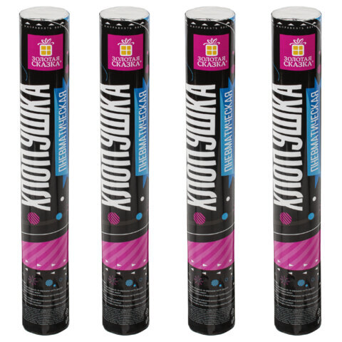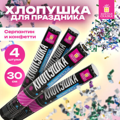 Хлопушка пневматическая 30 см "Серпантин" 3+1 шт. В ПОДАРОК, фольга разноцветная, ЗОЛОТАЯ СКАЗКА, 592084