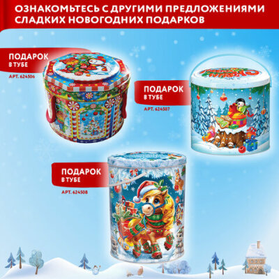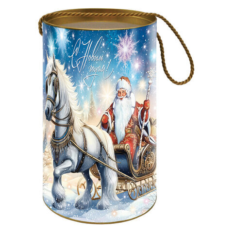 Новогодний подарок "БЕЛЫЙ КОНЬ" МОСУПАК – это сладости в картонной тубе с новогодним дизайном. Упаковка имеет удобную ручку для переноски. 600 г вкуснейших кондитерских изделий популярных торговых марок обязательно придутся по вкусу всем сладкоежкам!