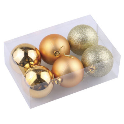Шары ёлочные 6 шт., 6 см, "Trio", пластик, ТЕМНОЕ ЗОЛОТО (глянец, матовый, глиттер), ЗОЛОТАЯ СКАЗКА, 590867