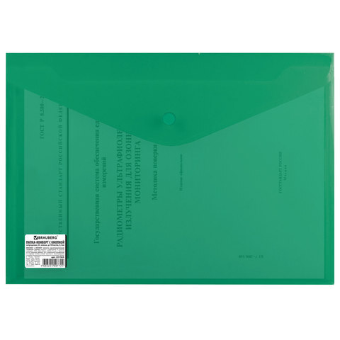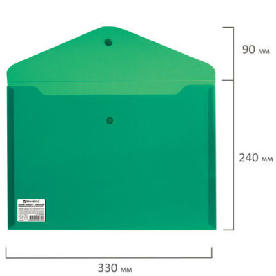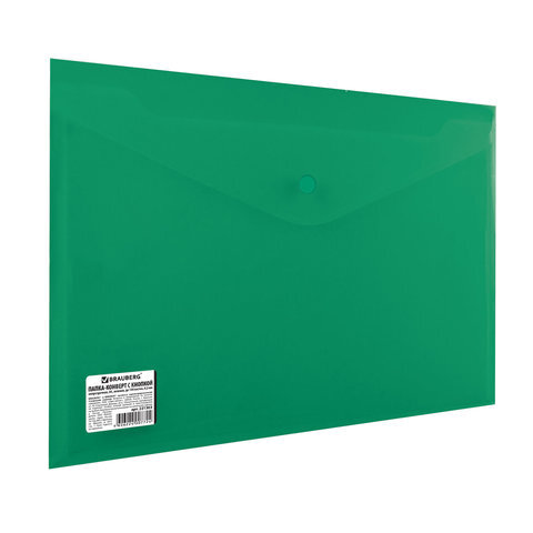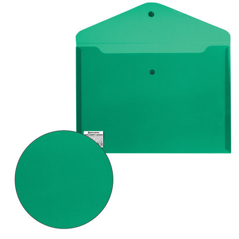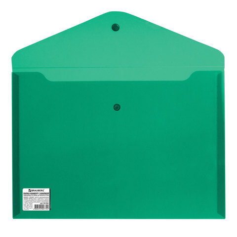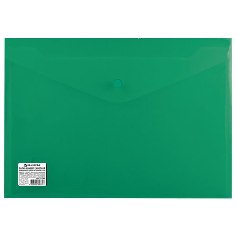 Папка-конверт с кнопкой BRAUBERG, А4, до 100 листов, непрозрачная, зеленая, СВЕРХПРОЧНАЯ 0,2 мм, 221363