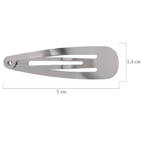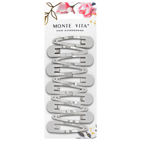 Заколки для волос НАБОР 10 шт., 5 см, клик-клак, глянцевый, серебристый, MONTE VITA (МОНТЕ ВИТА), 457079