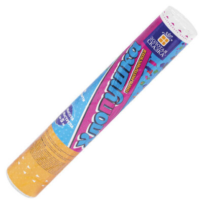 Пневматическая хлопушка не является пиротехникой и работает на основе энергии сжатого воздуха. Конфетти и серпантин ярких цветов можно использовать в помещении или на улице. Хлопушка подойдет для праздников, концертов, реквизита для фотосессии.