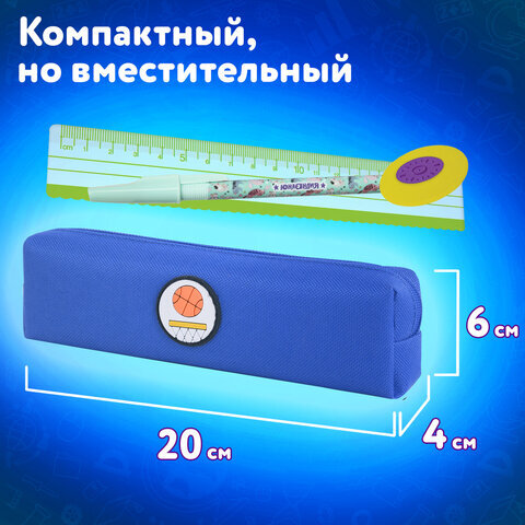 Пенал ЮНЛАНДИЯ ЮНИОР, 1 отделение, полиэстер, аппликация, "Basketball", 20х6х4 см, 273798