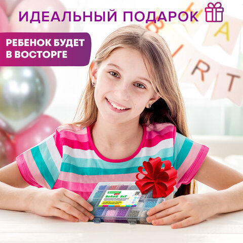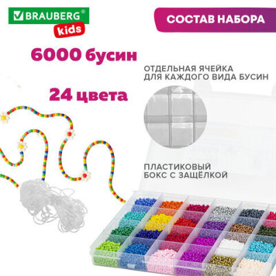 Набор для создания бижутерии и украшений из бисера BEADS SET, 6000 элементов, 24 вида, BRAUBERG KIDS, 664696