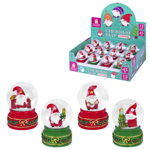 Снежный шар "Гномики" диаметр 45 мм, полистоун/стекло, 4 дизайна ассорти, ЗОЛОТАЯ СКАЗКА, 592597