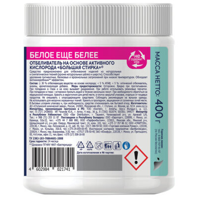 Пятновыводитель-отбеливатель кислородный для белого 400 г, БОЛЬШАЯ СТИРКА, 26456