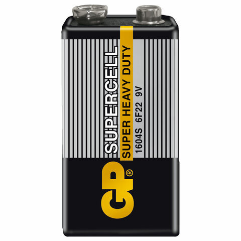 Батарейка 1 шт. GP SuperCell, Крона (6R61, 6F22, 1604S), солевая, в плёнке, 1604S-B