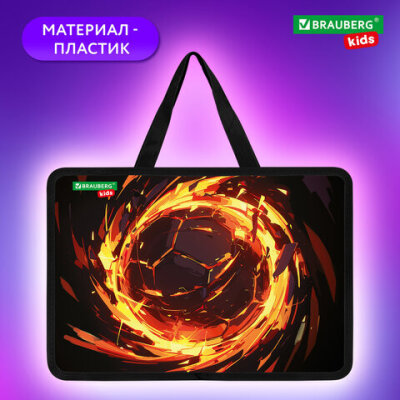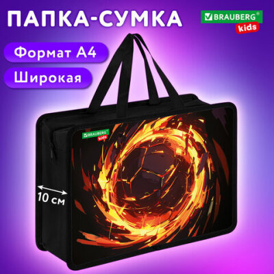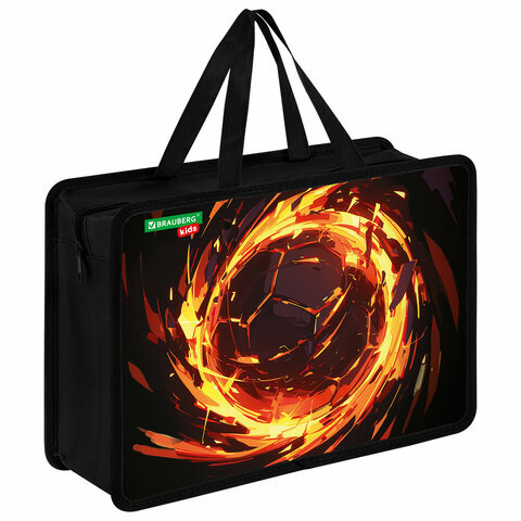 Папка на молнии с ручками BRAUBERG KIDS А4, 1 отделение, пластик, 100 мм, "Fire split", 273378