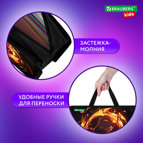 Папка на молнии с ручками BRAUBERG KIDS "Fire split" предназначена для транспортировки и хранения канцелярских принадлежностей и учебных пособий. Папка защитит содержимое от замятий и повреждений. Идеально подходит для внешкольных занятий.