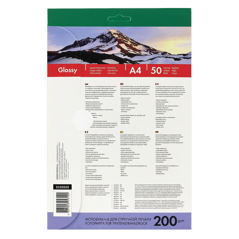 Фотобумага глянцевая, А4, 200 г/м2, односторонняя, 50 листов, LOMOND, 0102020