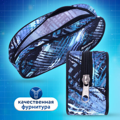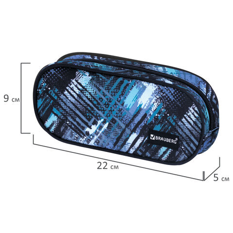 Пенал-косметичка BRAUBERG овальный, полиэстер, "Lines", 22х9х5 см, 229273
