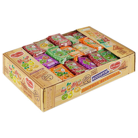 Пастила ПАСТИЛУШКА ассорти, натуральная, фруктовая, БЕЗ САХАРА, 800 г, коробка с окном