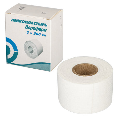Лейкопластырь рулонный ВЕРОФАРМ, 3х500 см, тканевая основа, картонная коробка, 20024111
