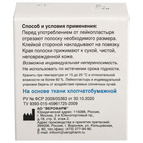 Универсальный рулонный лейкопластырь ВЕРОФАРМ на тканевой хлопковой основе в индивидуальной упаковке в картонной коробке. Гипоаллергенный, подходит для кожи с нормальной чувствительностью.