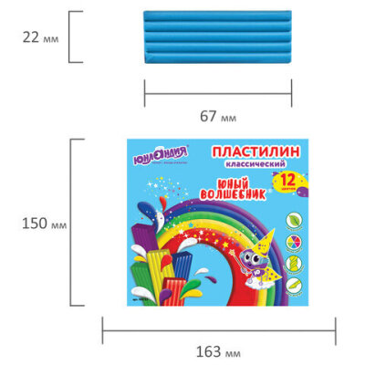 Пластилин классический ЮНЛАНДИЯ "ЮНЫЙ ВОЛШЕБНИК", 12 цветов, 240 г, СО СТЕКОМ, ВЫСШЕЕ КАЧЕСТВО, 105723