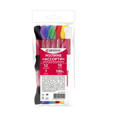 Нитки мулине DEVELIA произведены из 100% хлопка высокого качества, предназначены для разных техник вышивания и плетения. Стойкие цвета не теряют насыщенности и блеска, долго сохраняя свою декоративность.