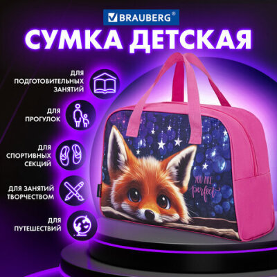 Сумка для занятий BRAUBERG с ручками, 35x25x15 см, "Cute fox", 272379