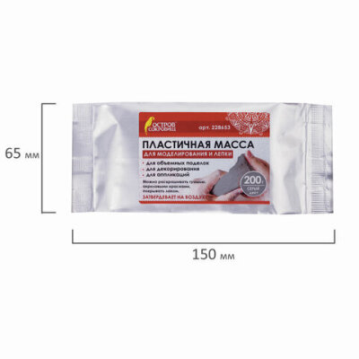Паста (масса) для моделирования и лепки ОСТРОВ СОКРОВИЩ, самозатвердевающая, 200 г, серая, 228653