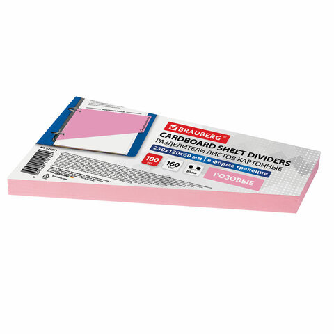 Разделители листов (трапеция 230х120х60 мм) картонные, КОМПЛЕКТ 100 штук, розовые, BRAUBERG, 225971
