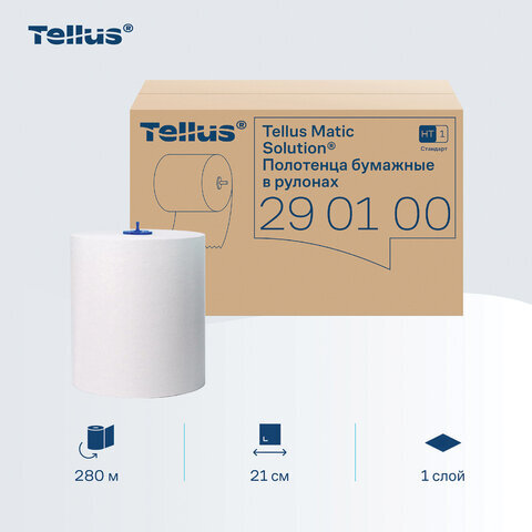Полотенца бумажные рулонные 280 м, Tellus/TORK Matic (Система H1) UNIVERSAL, КОМПЛЕКТ 6 рулонов, 290100