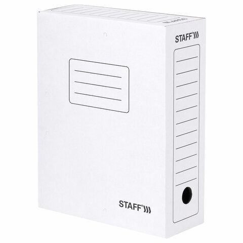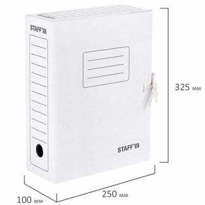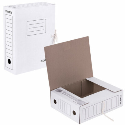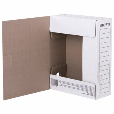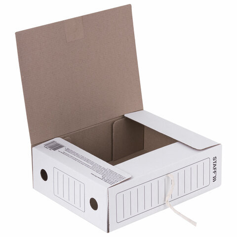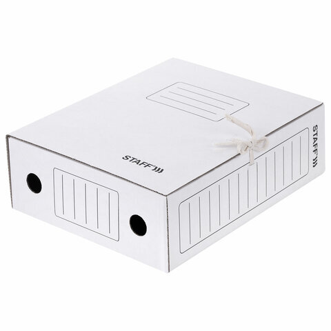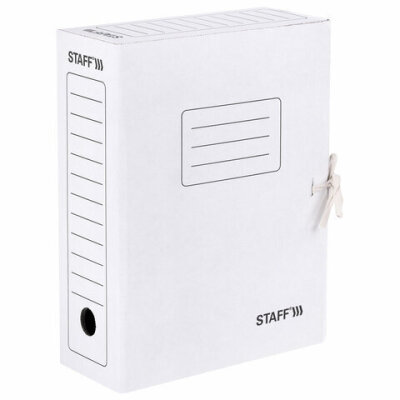 Папка архивная с завязками А4 (325х250 мм), 100 мм, до 900 листов, микрогофрокартон, БЕЛАЯ, STAFF, 128874