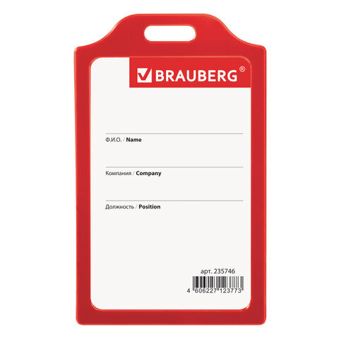 Вертикальный бейдж BRAUBERG для именной карточки предназначен для идентификации сотрудников в компаниях, а также на семинарах, тренингах, презентациях и других мероприятиях.