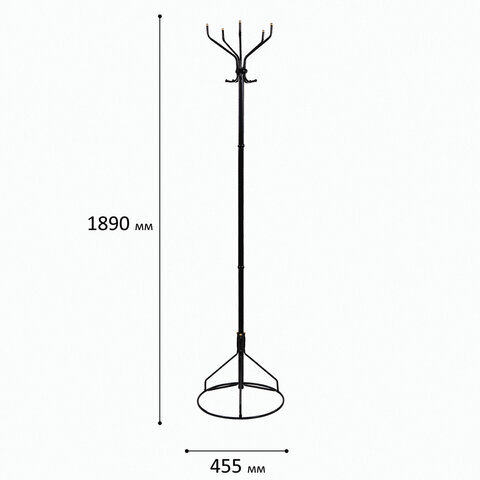 Вешалка-стойка "Ажур-2", 1,89 м, основание 46 см, 5 крючков, металл, черная
