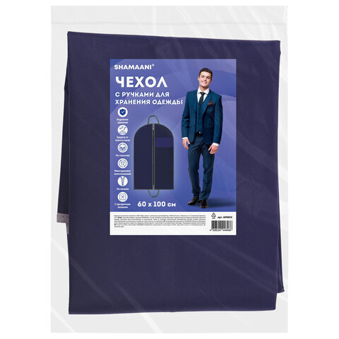 Чехол для одежды на молнии с ручками дорожный 60х100 см, синий, SHAMAANI (ШАМААНИ), 609602