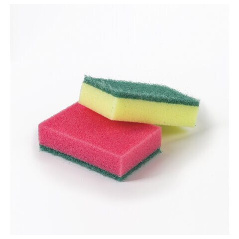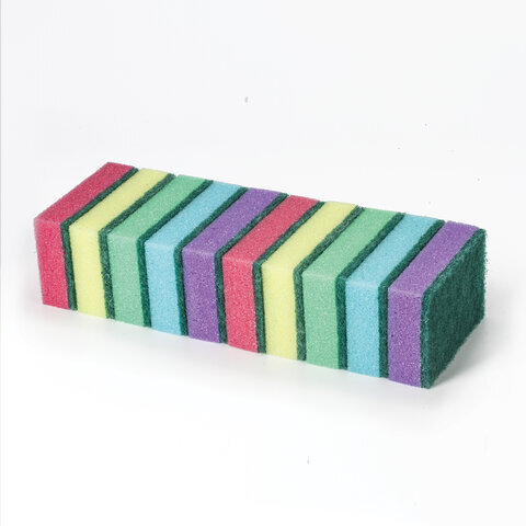 Губки для посуды 9,6х6,4х2,7 см, КОМПЛЕКТ 10 шт., MAXI, поролон с абразивным слоем, ОФИСМАГ К0012, 601553