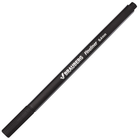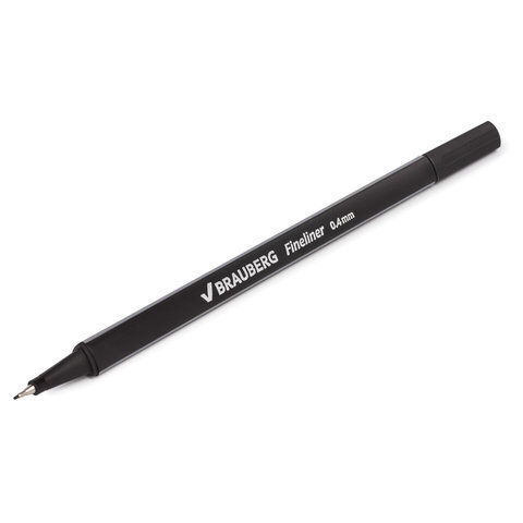 Ручка капиллярная (линер) BRAUBERG "Aero", ЧЕРНАЯ, трехгранная, металлический наконечник, линия письма 0,4 мм, 142252