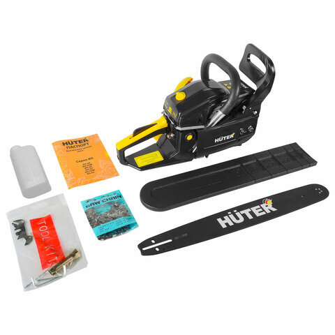 Бензопила HUTER BS-52, 2800 Вт, 3800 об/мин, длина шины 50 см, объем двигателя 52 см3, 3,8 л.с., 70/6/3