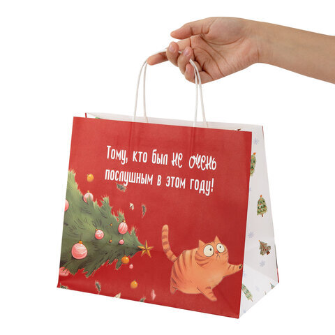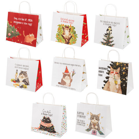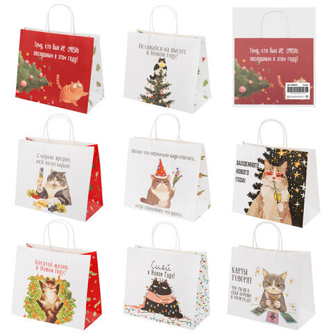 Пакет подарочный (1 штука), новогодний, 28х14х24 см "Котики", крафт, ассорти, ЗОЛОТАЯ СКАЗКА, 592433