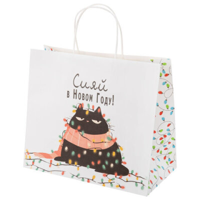 Подарочный пакет новогодний "Котики" ЗОЛОТАЯ СКАЗКА – отличное решение для упаковки любого презента, которое позволит легко и со вкусом оформить выбранный подарок.