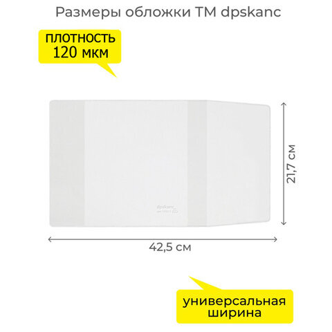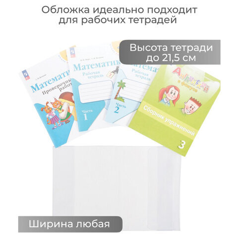 Обложка ПВХ со штрихкодом для учебников Моро, ПЛОТНАЯ, 120 мкм, 217х425 мм, универсальная, прозрачная, 1233.1, 1233,1