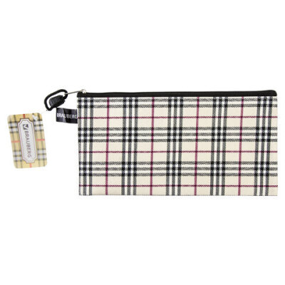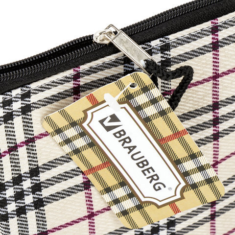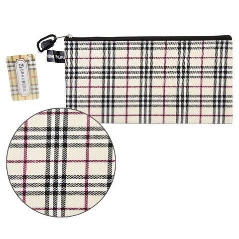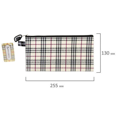 Папка-конверт на молнии МАЛОГО ФОРМАТА (255х130 мм), ткань в клетку, BRAUBERG "Checked", 223894