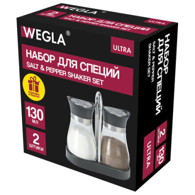 Набор для специй 2х130 мл, ULTRA, подставка + солонка + перечница, отверстия S/P, WEGLA (ВЕГЛА), 700233