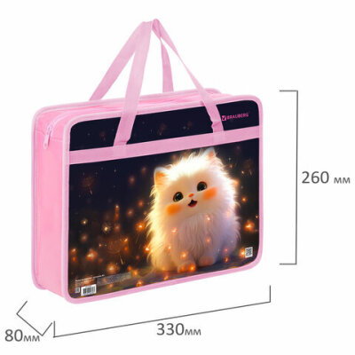 Папка на молнии с ручками BRAUBERG "Tiny beauty" предназначена для транспортировки и хранения канцелярских принадлежностей и учебных пособий. Она защищает содержимое от замятий и повреждений. Идеально подходит для внешкольных занятий.