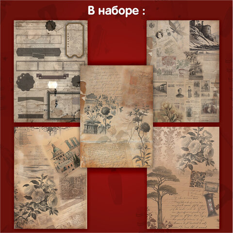 Бумага для скрапбукинга 15х21 см "Старая бумага", односторонняя, 30 листов, 90 г/м2, ОСТРОВ СОКРОВИЩ, 665447