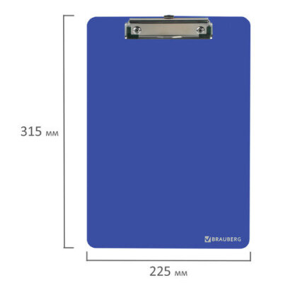 Доска-планшет BRAUBERG "SOLID" сверхпрочная с прижимом А4 (315х225 мм), пластик, 2 мм, СИНЯЯ, 226823