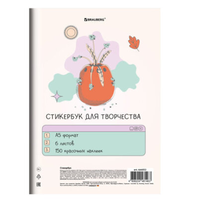 Стикербук для скрапбукинга А5, 6 листов, 150 цветных стикеров, на скрепке, BRAUBERG, "Bullet Journal", 666052