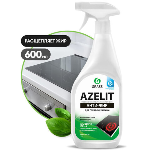 Средство для чистки плит, стеклокерамики от жира / нагара 600 мл, GRASS AZELIT АНТИЖИР щелочное, распылитель, 125642