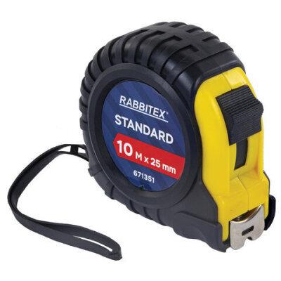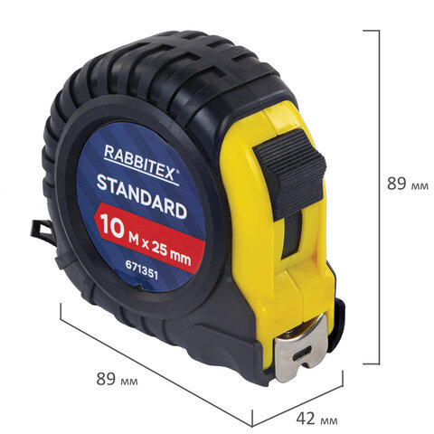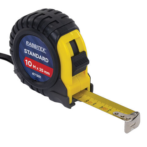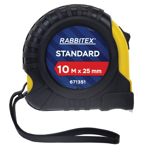 Рулетка измерительная 10 м х 25 мм, обрезиненный корпус, с фиксатором, RABBITEX (РАББИТЕКС) Standard, 671351