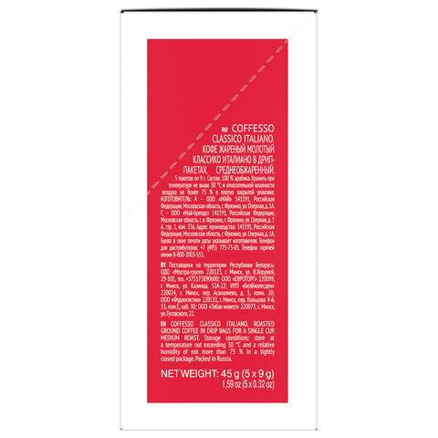 Кофе в дрип-пакетах COFFESSO "Classico Italiano" 5 порций по 9 г, 102313