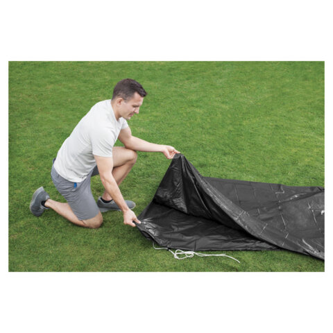 Специальный защитный тент-покрывало для бассейнов каркасных и с надувным бортом "Fast Set" BESTWAY предназначен для сохранения водной поверхность бассейна от пыли, листвы, и другого мусора. Диаметр тента – 305 см (D 370 см).