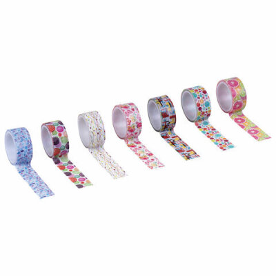Клейкие WASHI-ленты для декора "Микс №2", 15 мм х 3 м, 7 цветов, рисовая бумага, ОСТРОВ СОКРОВИЩ, 661710