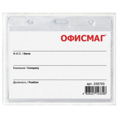 Горизонтальный бейдж ОФИСМАГ используется для идентификации сотрудников в компаниях, а также на семинарах, тренингах, презентациях и других мероприятиях.
