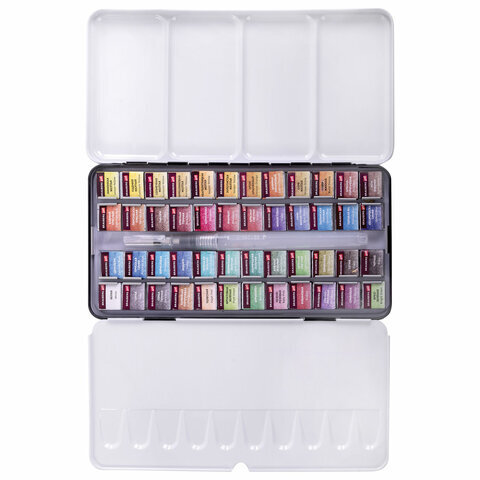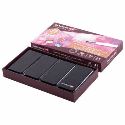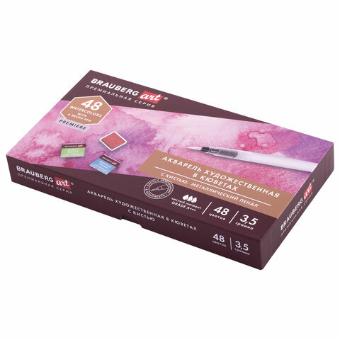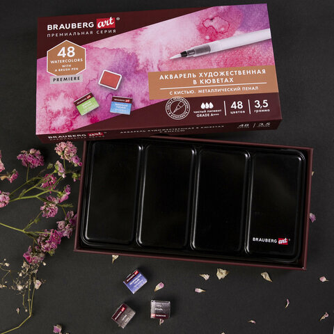 Акварель художественная кюветы НАБОР 48 цветов по 3,5 г, металлический кейс, BRAUBERG ART PREMIERE, 191775