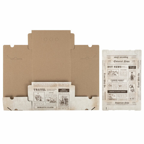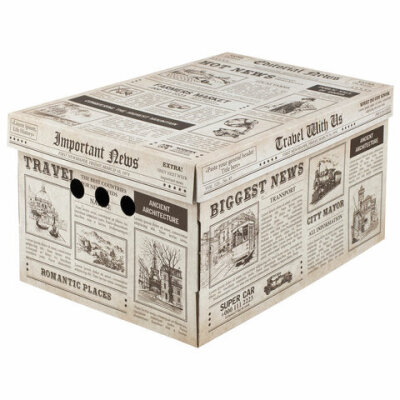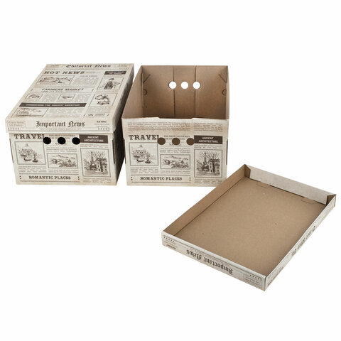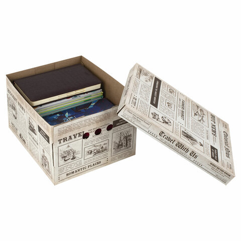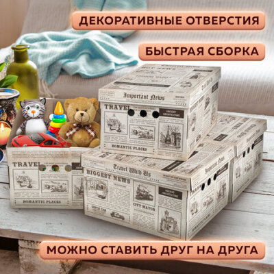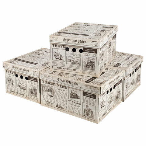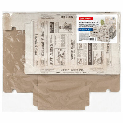 Короб для хранения из плотного микрогофрокартона 330х250х185 мм, КОМПЛЕКТ 4 шт., BRAUBERG HOME "Газета", 271814