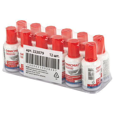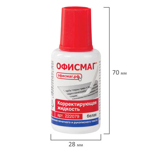 Корректирующая жидкость ОФИСМАГ, быстросохнущая, 20 мл, с кисточкой, 222079