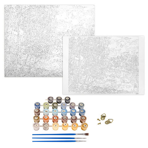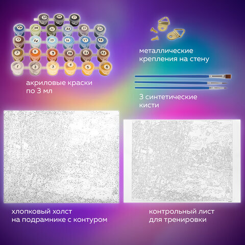 | Комплектация | акриловые краски, кисть, крепеж, лист бумаги для тренировки, холст на подрамнике |